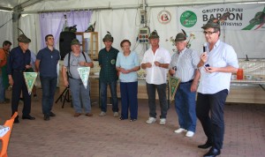 Tra una portata e l’altra sono stati consegnati i gagliardetti, fatti a ricordo di questo importante traguardo, alle persone che in un modo o nell’altro hanno contribuito alla crescita dello spirito alpino nella comunità paesana e comunale.
